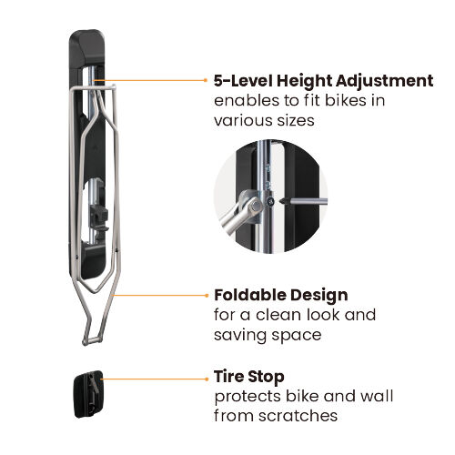 Offering 5 levels of height adjustment, the rack can accommodate bikes of various sizes, ensuring a perfect fit for your specific bike.