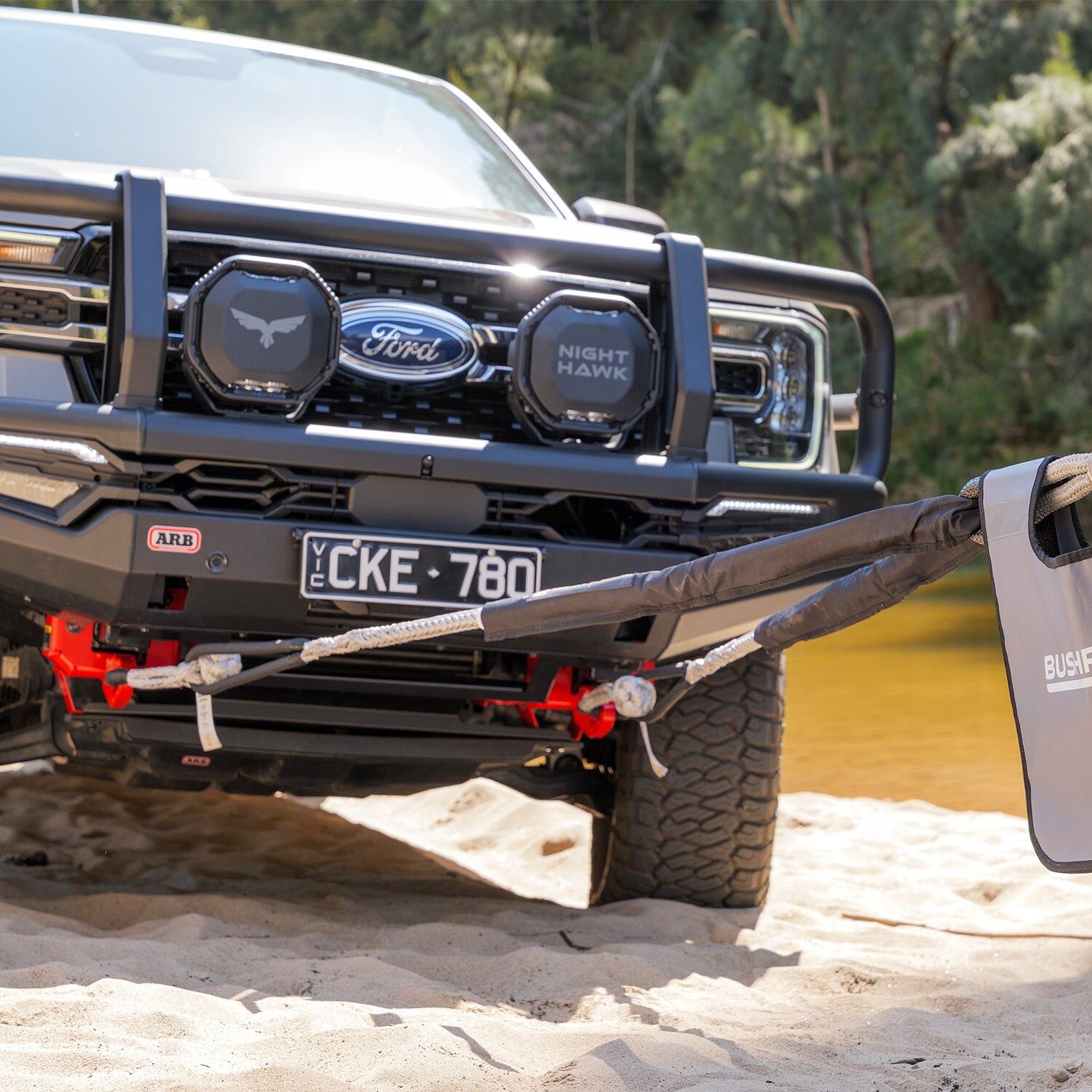 The Bushranger Recovery Bridle rope is rated to 13,000kg MBS (Minimum Breaking Strength), featuring durable webbing that can withstand severe off-road conditions.
