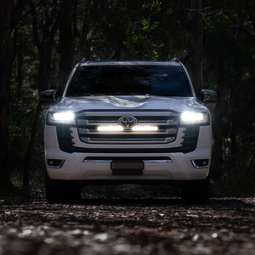 The Night Hawk Behind-Grille Light Bar Kit is designed to enhance the lighting performance of the Toyota LandCruiser 300 Series while preserving a clean, factory-style appearance. Mounted discreetly behind the grille, this kit delivers powerful forward illumination without altering the vehicle’s exterior profile or requiring external mounts.