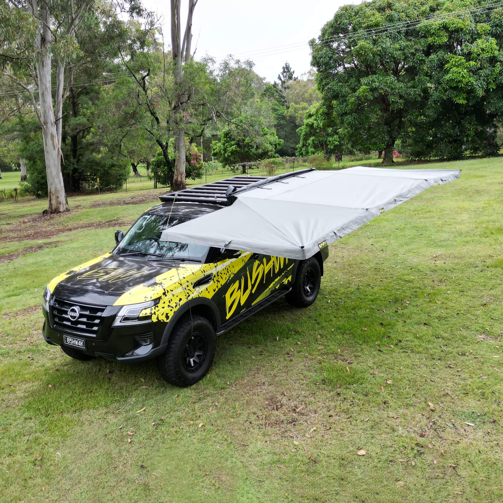 Although Bushwakka awnings are designed to be freestanding, please be aware that wind gusts can be highly unpredictable. For your safety and the longevity of your awning, we strongly recommend using legs, tie-downs, guy ropes, and pegs during its operation.