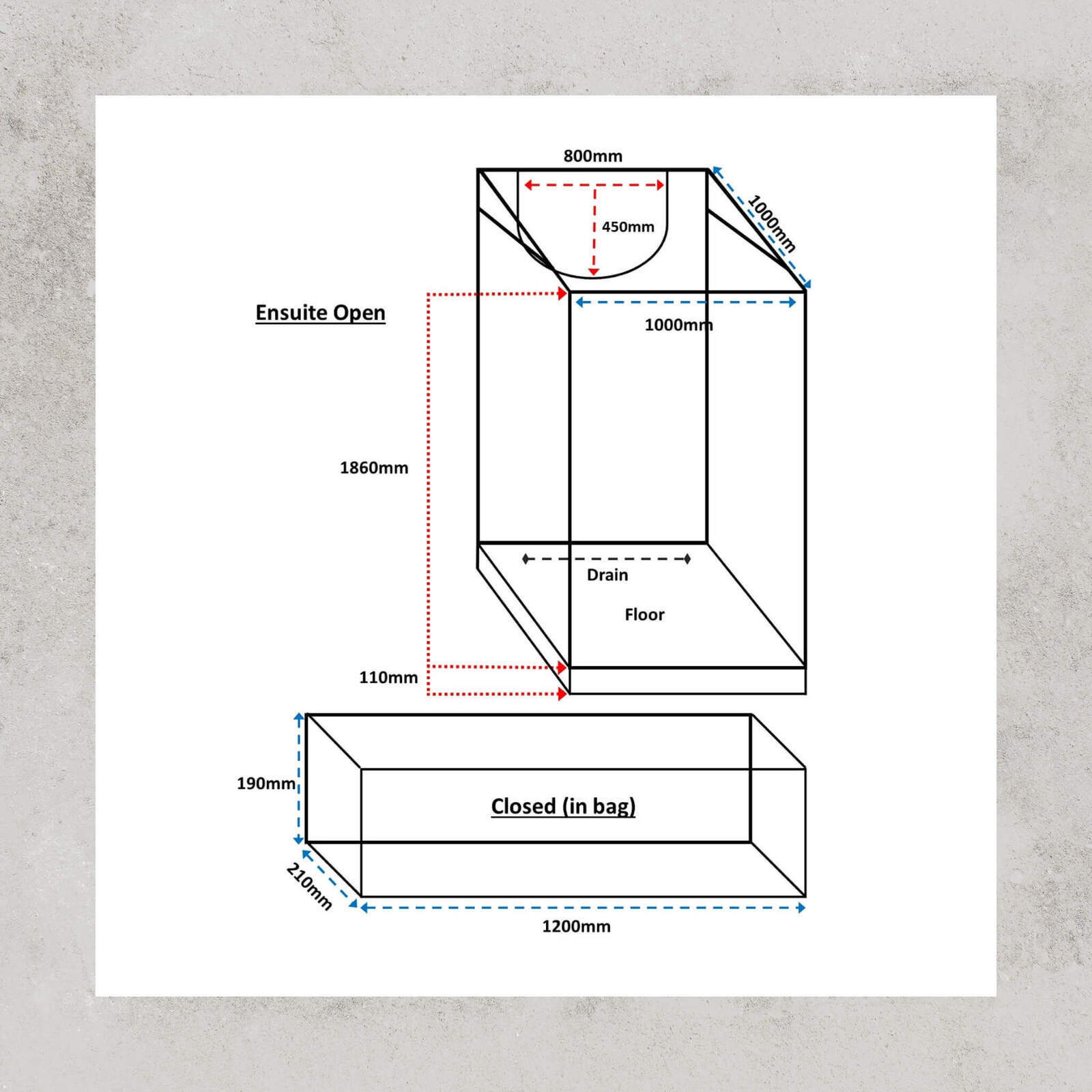 Comes with a PVC floor that keeps your feet clean and lets water drain out. You can also unzip and remove it if needed—perfect for taller setups.