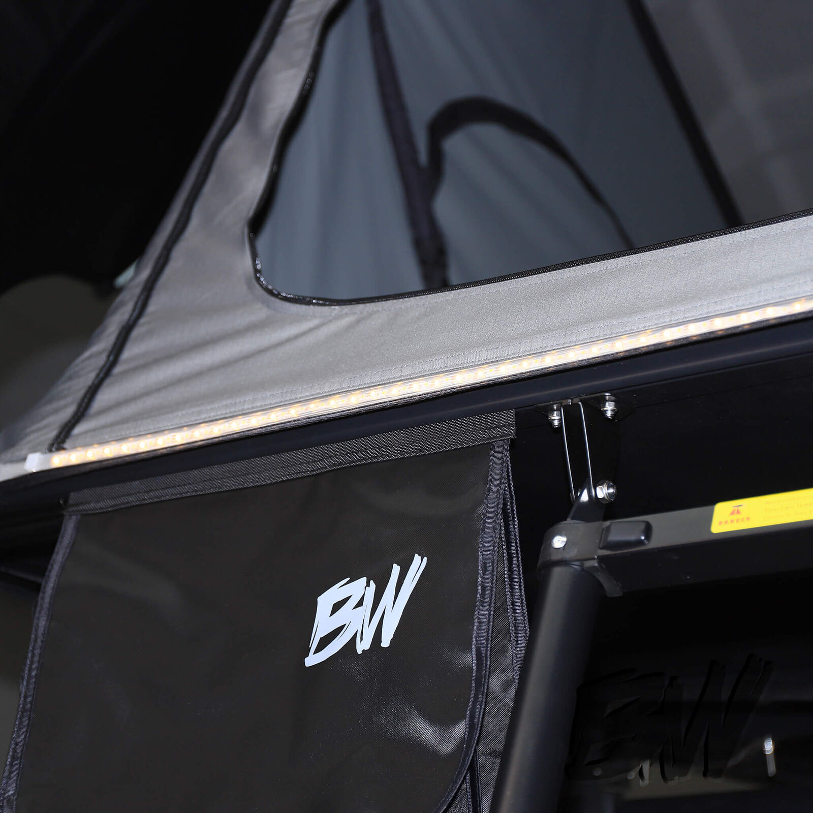 Stay comfortable with a double-layer cushion system—featuring a 3.5cm sponge mattress and 0.5cm anti-condensation layer. Enjoy excellent airflow via three windows, a skylight, and hidden ventilation ports. Integrated LED lighting, interior pockets, and lockable latches round out this all-in-one RTT setup.