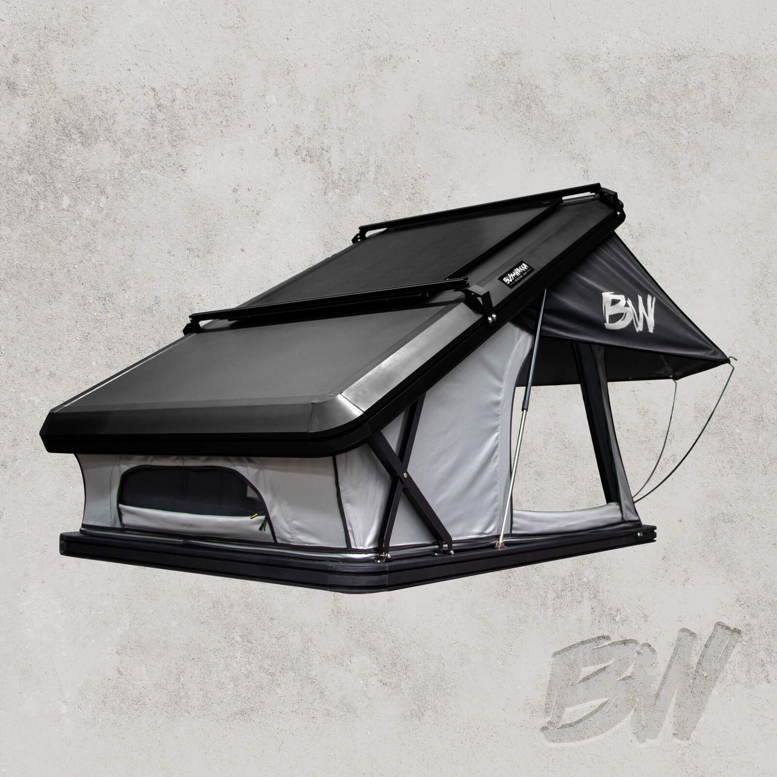 Experience hassle-free camping with the Shack Roof Top Tent, designed for quick setup and exceptional comfort. Its innovative scissor pop-up design provides extra headroom and ample space for bedding, making your outdoor stay more enjoyable. Featuring an insulated roof for sun protection, large windows for scenic views, and gas strut assistance, setup and pack-down are effortless every time.