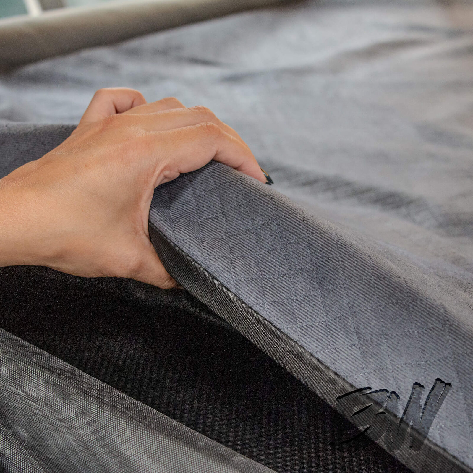 Relax on a plush 70mm memory foam mattress with an anti-condensation mat and a super soft cotton cover. The generous mattress size of 200 x 128 cm comfortably sleeps two, ensuring restful nights after long days outdoors.