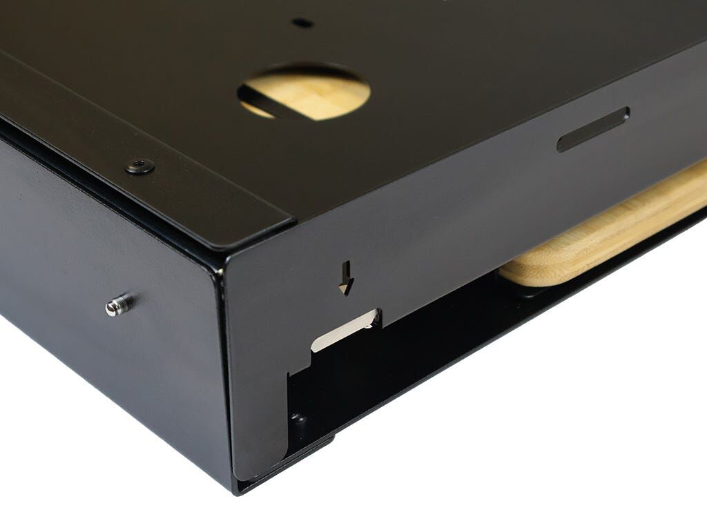 High-strength bearing drawer slides allow the tray to extend nearly 100% from the anchored base.