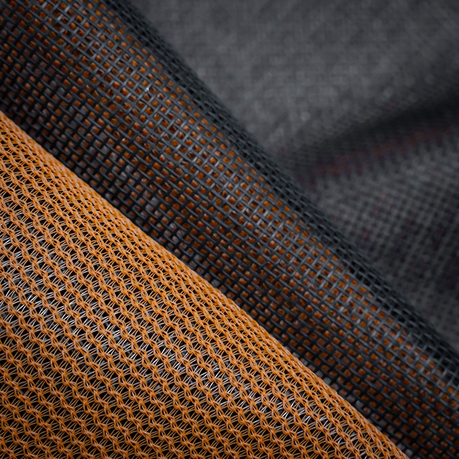 • Material: Knitted PE (orange layer) / PVC Mesh (black layer)