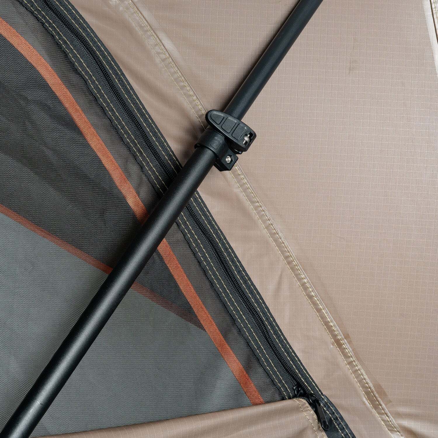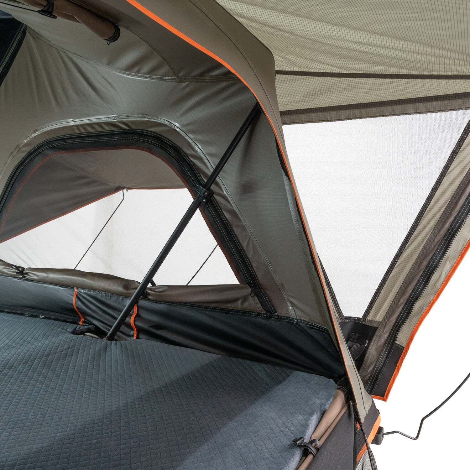 Built tough with a lightweight ABS shell and aluminium side extrusions, it’s strong enough to handle the roughest terrain while staying light on your vehicle. The innovative X-hinge design offers more headroom and better airflow, making your stay under the stars even more enjoyable.