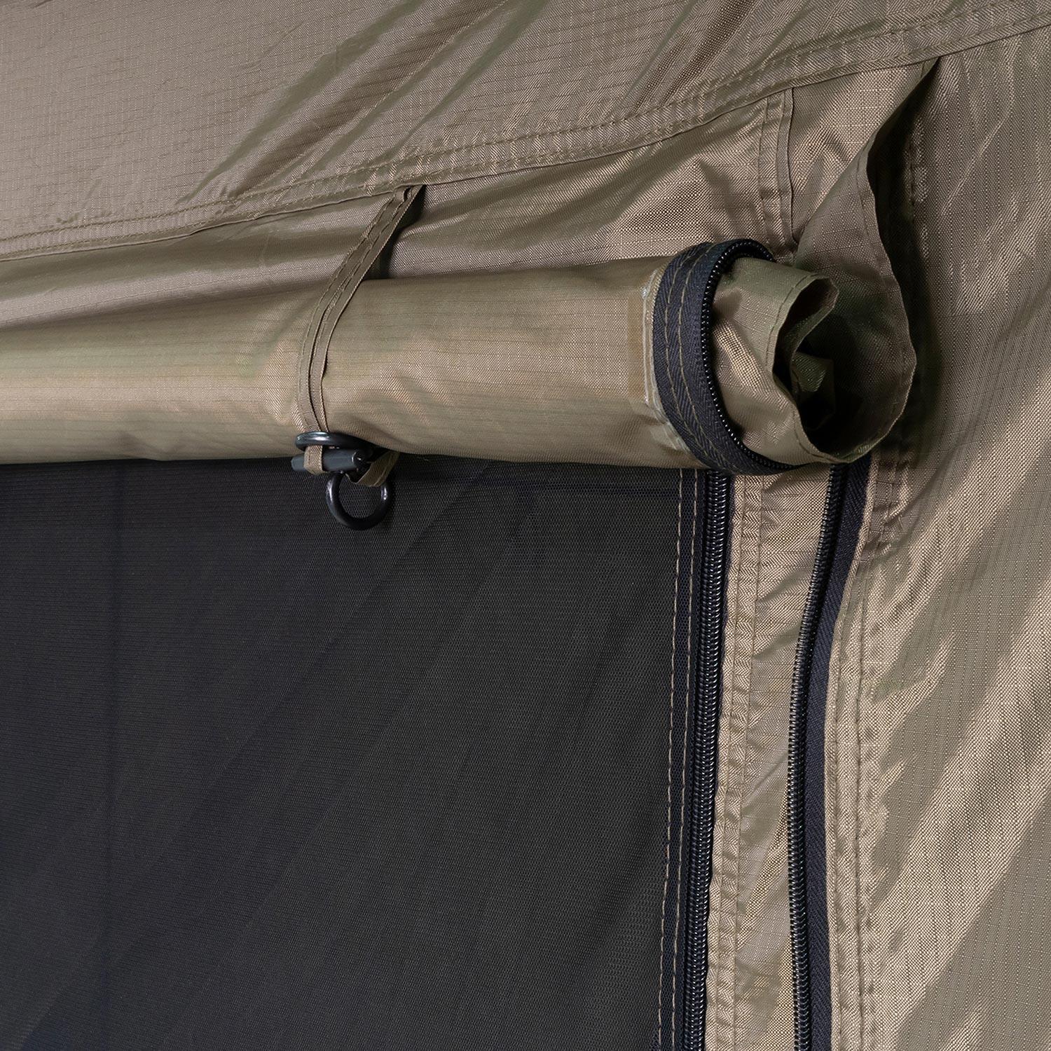 There are three entries to this annex giving you unlimited access no matter where you pull up, plus it has a rear opening so you can get to your vehicle without stepping outside. The sides have both doors and gusset windows to allow for airflow, especially in rainy conditions. If you want some extra shade, you can convert the front and side roll up doors into awnings by adding telescopic alloy poles (sold separately)