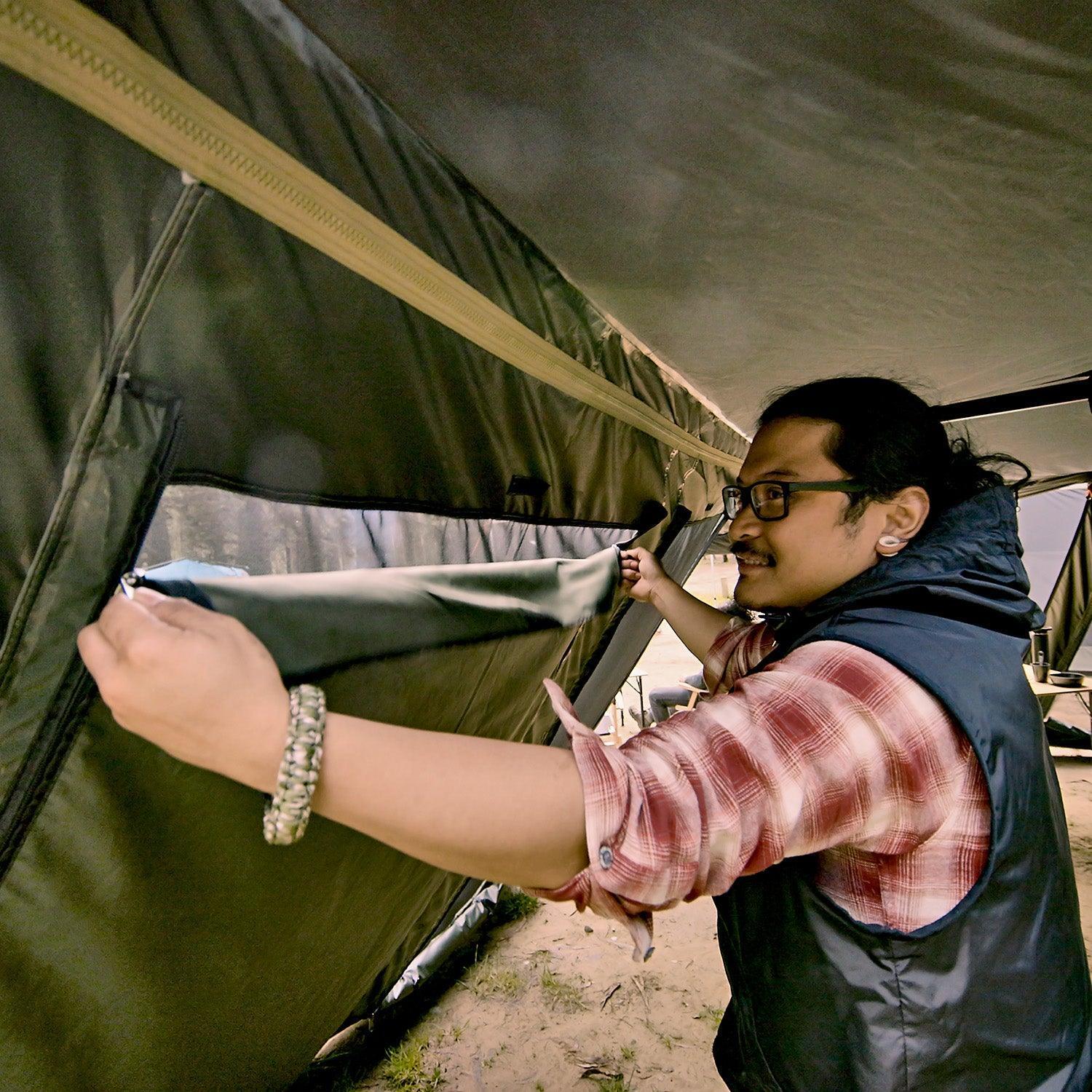 • Zippered wall panels allows for versatile configurations