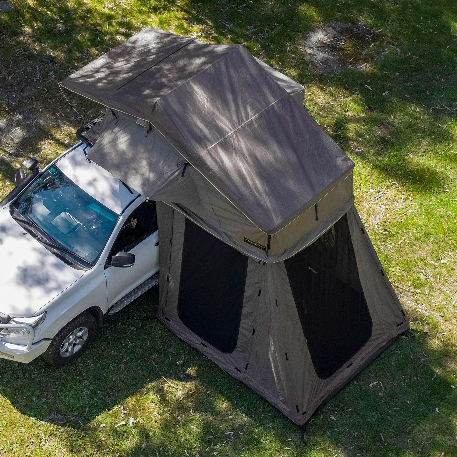 • Creates additional shade, storage and shelter options for your rooftop tent set up