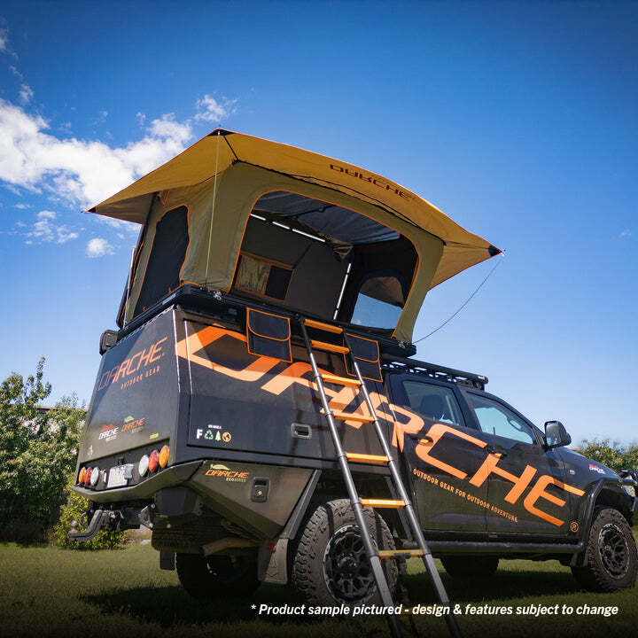 Other features include air vents to reduce condensation while the tent is closed and an anti-condensation mat under the mattress as well as plenty of internal pockets and hooks for storage and shoe bags to keep your muddy boots out of the tent. It comes with a 2.3m aluminium telescopic ladder that suits most vehicle heights and can be packed away inside the tent along with some light bedding when it's time to get back on the road. So, next time you’re heading off the beaten track or off on a touring adventure, get kitted out with a Darche Highland Roof Top Tent.