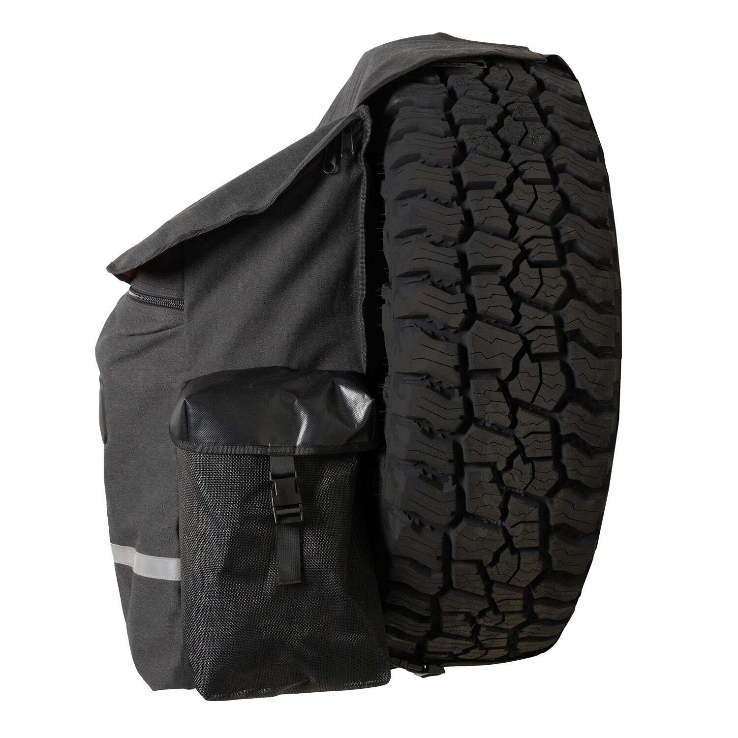 The Offgrid Spare Wheel Bag, with its large 65L main compartment and front box pocket, offers ample storage while you're on the go. Conveniently mounted on the rear wheel of your 4WD, it's the ideal solution for storing excess gear, rubbish, dirty clothes, or even recovery straps.