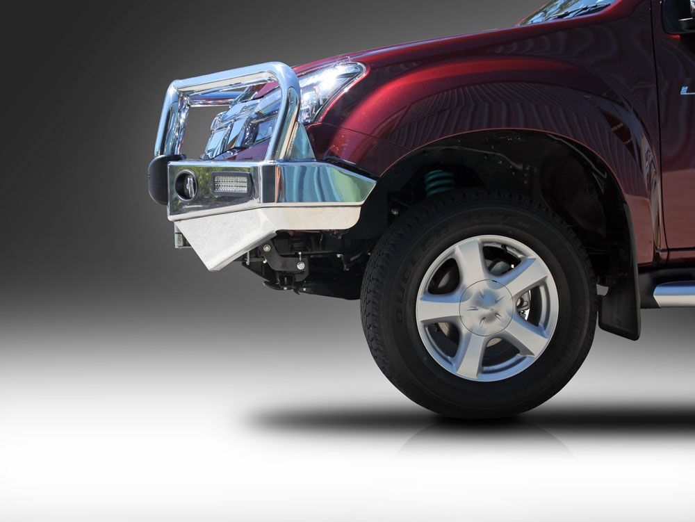 ECB's Winch Bullbar is made from a hi-tensile alloy that weighs half the weight of a steel Bullbar, yet offers the same level of protection. This allows you to add a winch without multiplying the weight of a steel Bullbar to the weight of your winch.