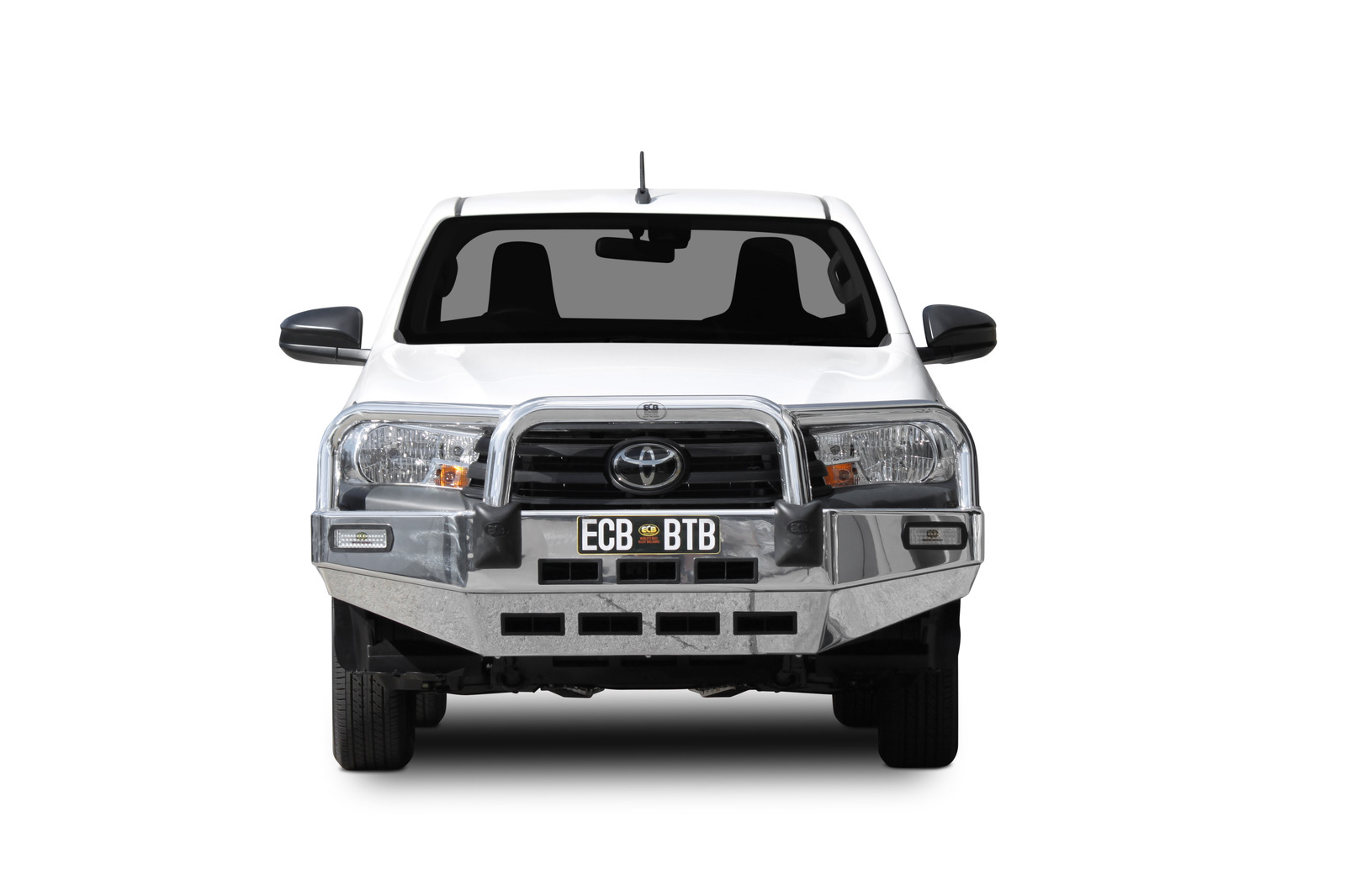 ECB's Bullbar is made from a hi-tensile alloy that weighs half the weight of a steel Bullbar, yet offers the same level of protection. Designed to wrap around the front of the vehicle and mounted to the frame with a specific engineered 8mm thick plate steel mount to form an incredibly secure and strong fit.