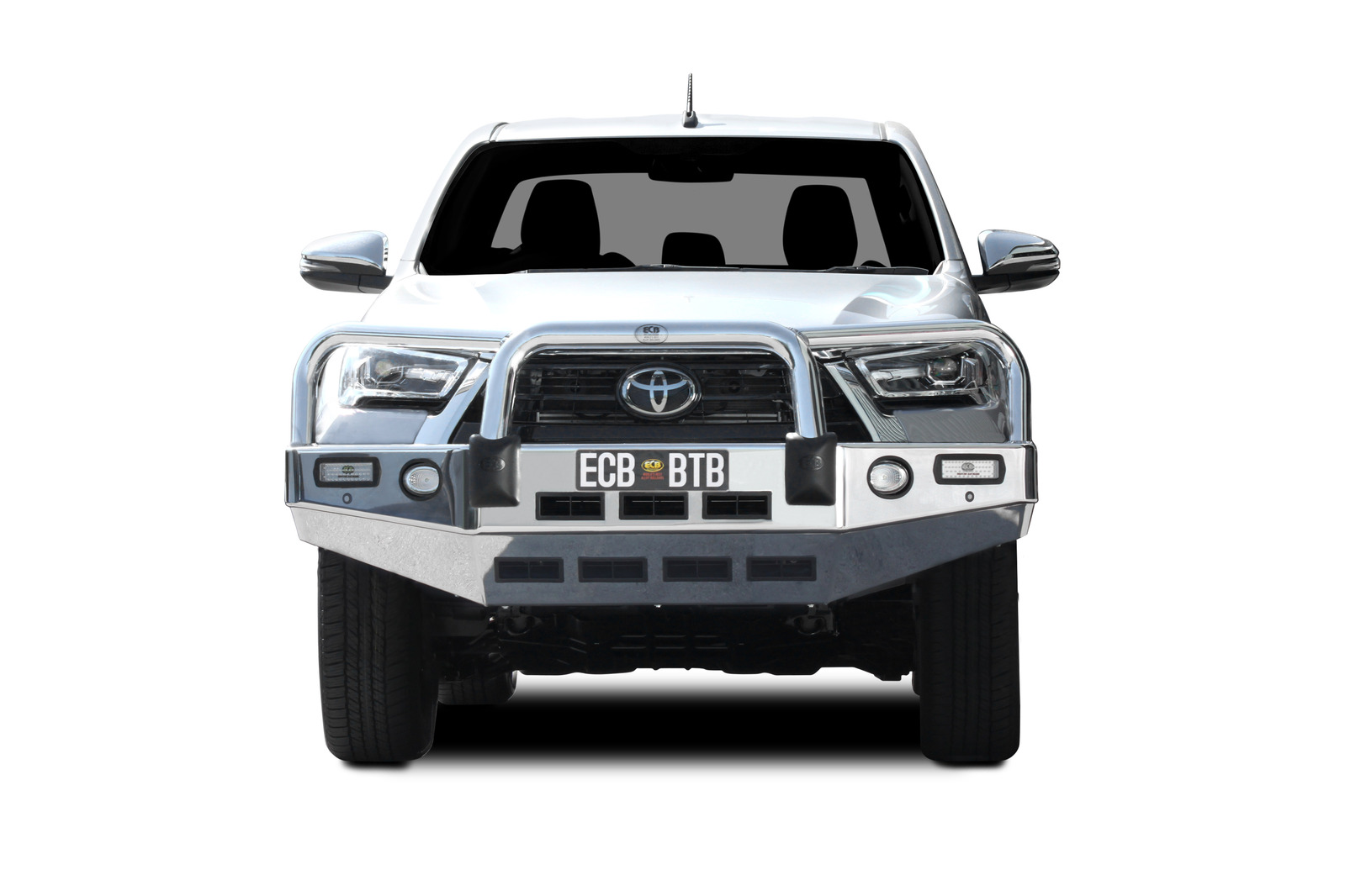 ECB's Bullbar is made from a hi-tensile alloy that weighs half the weight of a steel Bullbar, yet offers the same level of protection. Designed to wrap around the front of the vehicle and mounted to the frame with a specific engineered 8mm thick plate steel mount to form an incredibly secure and strong fit.