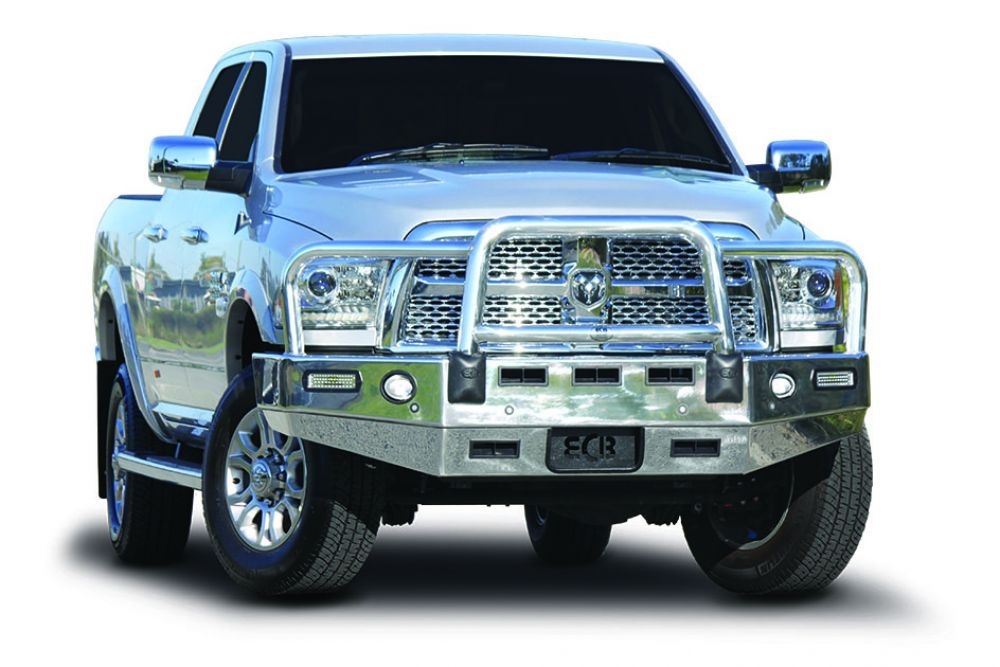 The Bullbar is further reinforced with a full width and braced lower protection skirt. Every Winch Bullbar is secured to the vehicle with a specific engineered 8mm thick plate steel winch mount and will accommodate up to a 11,500lb low mount winch. Everything ECB makes is Airbag Compatible, ADR Compliant and comes with thier lifetime structural warranty. If equipped with spotlight mounting tabs, lights up to 1.75kg can be accommodated.