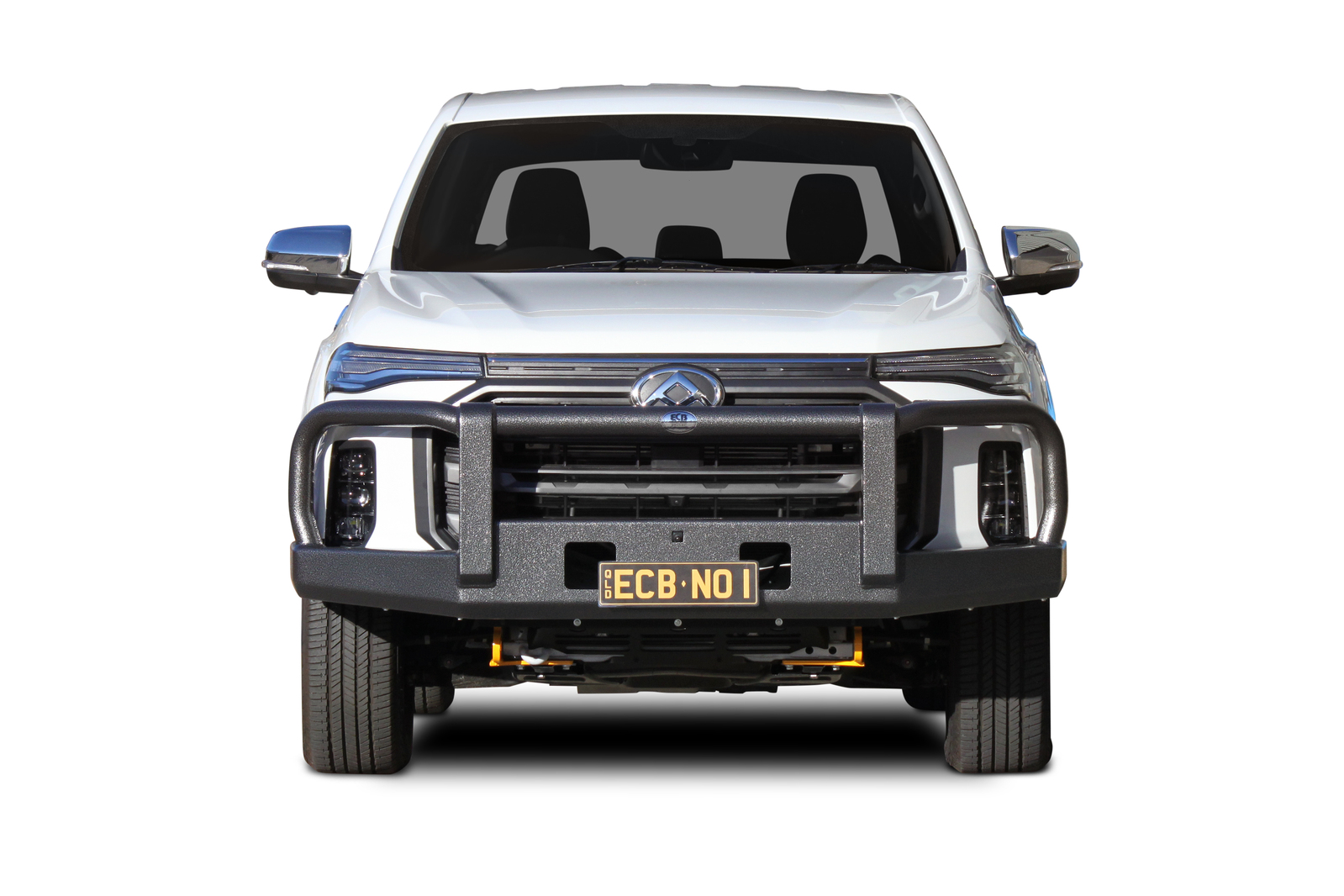 ECB's Bullbar is made from a hi-tensile alloy that weighs half the weight of a steel Bullbar, yet offers the same level of protection. Designed to wrap around the front of the vehicle and mounted to the frame with a specific engineered 8mm thick plate steel mount to form an incredibly secure and strong fit.