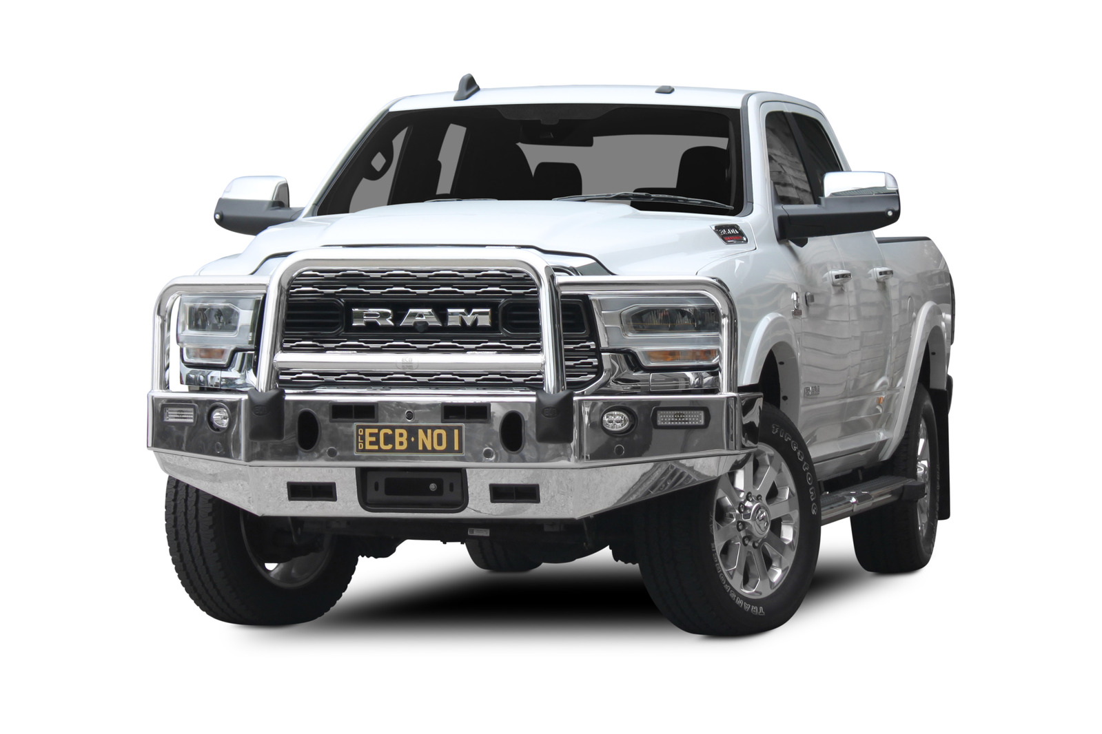 The Bullbar is further reinforced with a full width and braced lower protection skirt. Every Winch Bullbar is secured to the vehicle with a specific engineered 8mm thick plate steel winch mount and will accommodate up to a 11,500lb low mount winch. Everything ECB makes is Airbag Compatible, ADR Compliant and comes with thier lifetime structural warranty. If equipped with spotlight mounting tabs, lights up to 1.75kg can be accommodated.