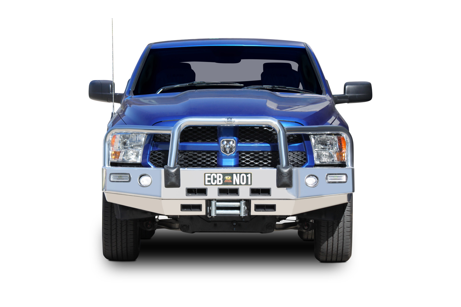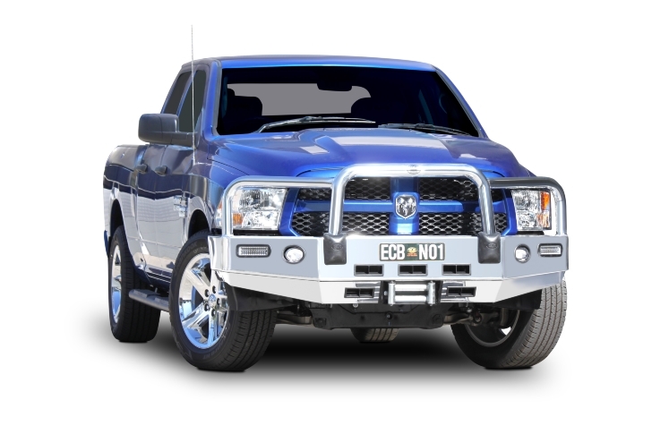 The Bullbar is further reinforced with a full width and braced lower protection skirt. Every Winch Bullbar is secured to the vehicle with a specific engineered 8mm thick plate steel winch mount and will accommodate up to a 11,500lb low mount winch. Everything ECB makes is Airbag Compatible, ADR Compliant and comes with thier lifetime structural warranty. If equipped with spotlight mounting tabs, lights up to 1.75kg can be accommodated.
