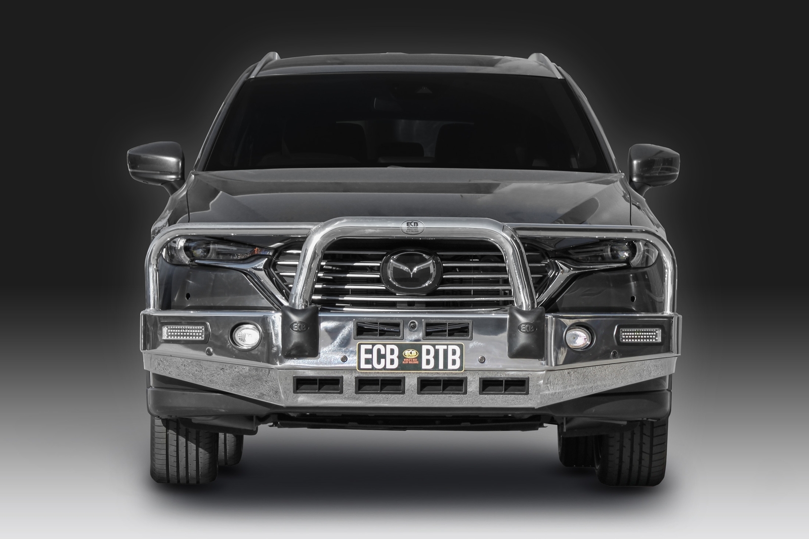 ECB's Bullbar is made from a hi-tensile alloy that weighs half the weight of a steel Bullbar, yet offers the same level of protection. Designed to wrap around the front of the vehicle and mounted to the frame with a specific engineered 8mm thick plate steel mount to form an incredibly secure and strong fit.