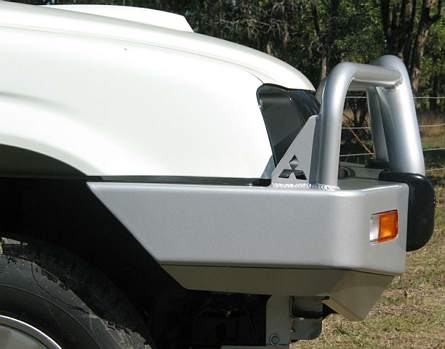 ECB's Bullbar is made from a hi-tensile alloy that weighs half the weight of a steel Bullbar, yet offers the same level of protection. Designed to wrap around the front of the vehicle and mounted to the frame with a specific engineered 8mm thick plate steel mount to form an incredibly secure and strong fit.