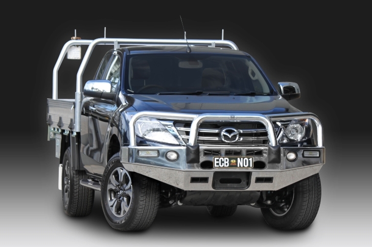 The Bullbar is further reinforced with a full width and braced lower protection skirt. Every Winch Bullbar is secured to the vehicle with a specific engineered 8mm thick plate steel winch mount and will accommodate up to a 11,500lb low mount winch. Everything ECB makes is Airbag Compatible, ADR Compliant and comes with thier lifetime structural warranty. If equipped with spotlight mounting tabs, lights up to 1.75kg can be accommodated.
