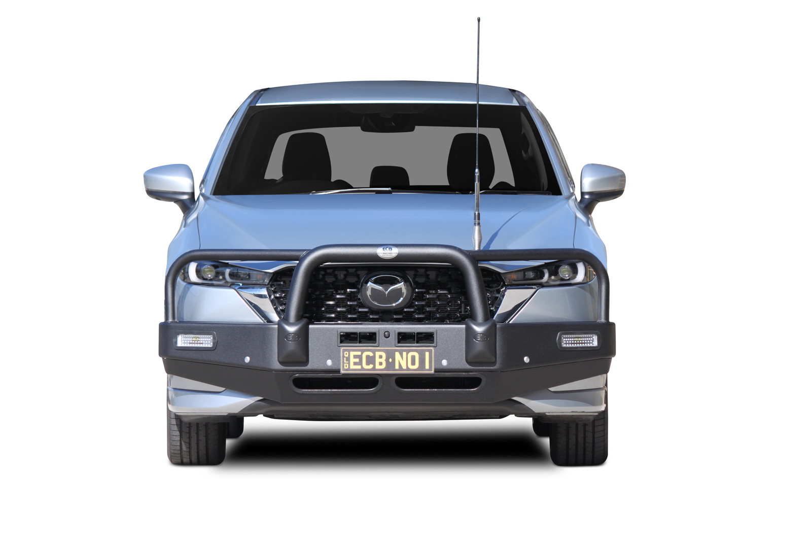 ECB's Bullbar is made from a hi-tensile alloy that weighs half the weight of a steel Bullbar, yet offers the same level of protection. Designed to wrap around the front of the vehicle and mounted to the frame with a specific engineered 8mm thick plate steel mount to form an incredibly secure and strong fit.
