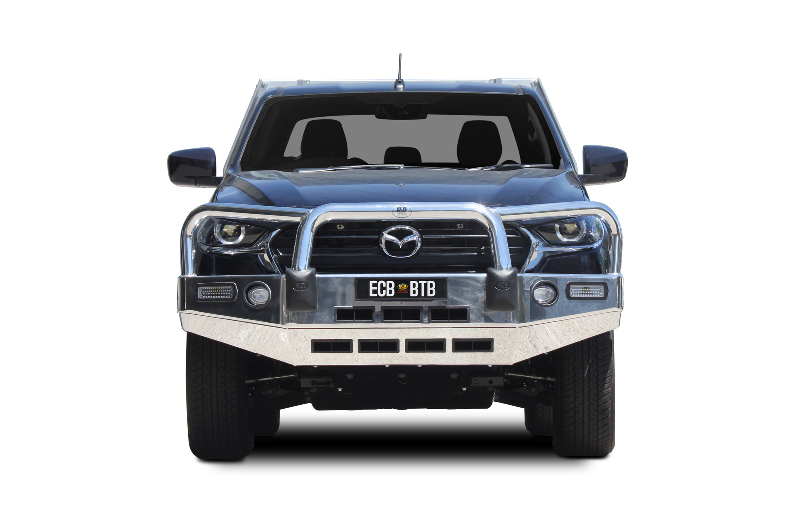 ECB's Bullbar is made from a hi-tensile alloy that weighs half the weight of a steel Bullbar, yet offers the same level of protection. Designed to wrap around the front of the vehicle and mounted to the frame with a specific engineered 8mm thick plate steel mount to form an incredibly secure and strong fit.