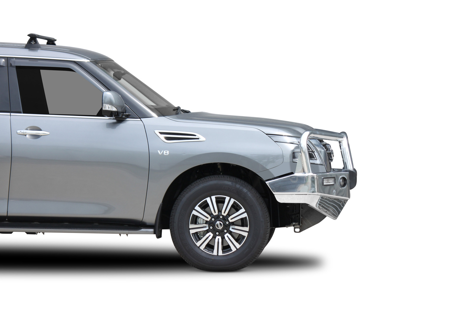 ECB's Bullbar is made from a hi-tensile alloy that weighs half the weight of a steel Bullbar, yet offers the same level of protection. Designed to wrap around the front of the vehicle and mounted to the frame with a specific engineered 8mm thick plate steel mount to form an incredibly secure and strong fit.