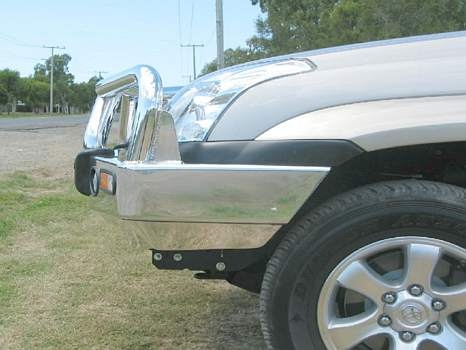 ECB's Bullbar is made from a hi-tensile alloy that weighs half the weight of a steel Bullbar, yet offers the same level of protection. Designed to wrap around the front of the vehicle and mounted to the frame with a specific engineered 8mm thick plate steel mount to form an incredibly secure and strong fit.