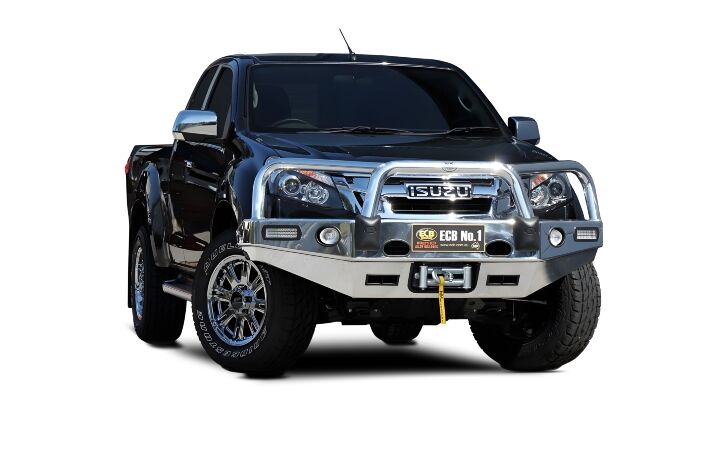 ECB's Winch Bullbar is made from a hi-tensile alloy that weighs half the weight of a steel Bullbar, yet offers the same level of protection. This allows you to add a winch without multiplying the weight of a steel Bullbar to the weight of your winch.
