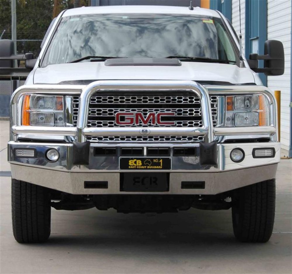 The Bullbar is further reinforced with a full width and braced lower protection skirt. Every Winch Bullbar is secured to the vehicle with a specific engineered 8mm thick plate steel winch mount and will accommodate up to a 11,500lb low mount winch. Everything ECB makes is Airbag Compatible, ADR Compliant and comes with thier lifetime structural warranty. If equipped with spotlight mounting tabs, lights up to 1.75kg can be accommodated.