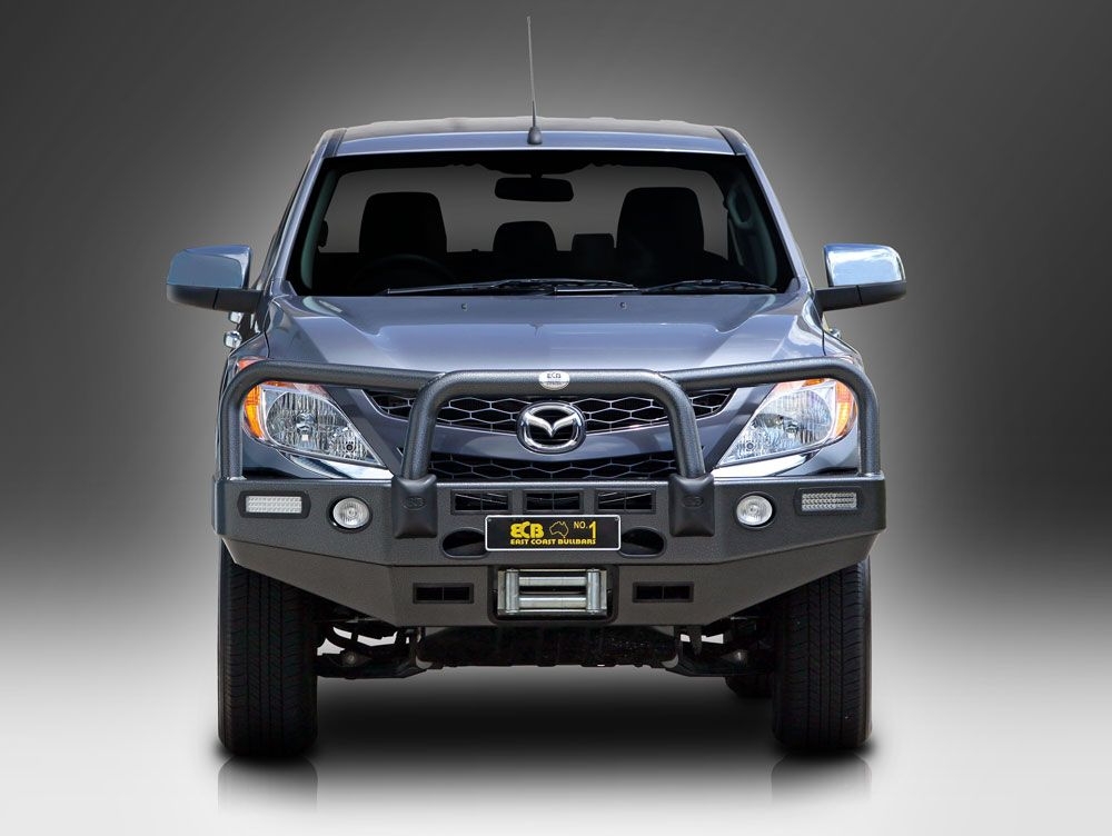 ECB's winch mount is secured to the vehicle with a specific engineered 8mm thick plate steel winch mount and will accommodate up to a 11,500lb low mount winch.