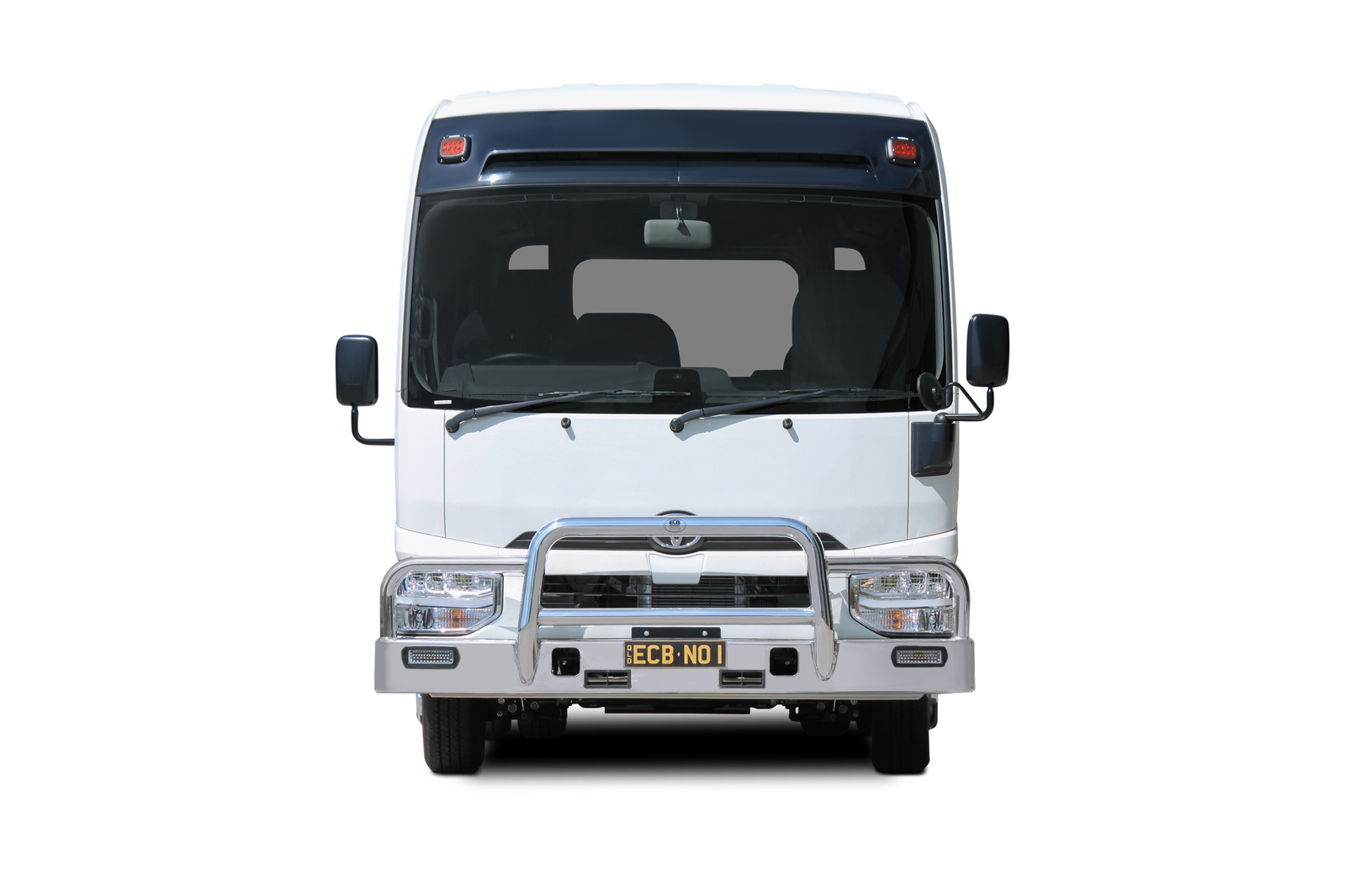 ECB's Bullbar is made from a hi-tensile alloy that weighs half the weight of a steel Bullbar, yet offers the same level of protection. Designed to wrap around the front of the vehicle and mounted to the frame with a specific engineered 8mm thick plate steel mount to form an incredibly secure and strong fit.