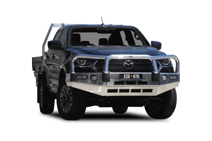ECB's Bullbar is made from a hi-tensile alloy that weighs half the weight of a steel Bullbar, yet offers the same level of protection. Designed to wrap around the front of the vehicle and mounted to the frame with a specific engineered 8mm thick plate steel mount to form an incredibly secure and strong fit.