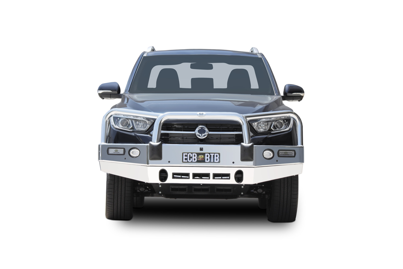 ECB's Bullbar is made from a hi-tensile alloy that weighs half the weight of a steel Bullbar, yet offers the same level of protection. Designed to wrap around the front of the vehicle and mounted to the frame with a specific engineered 8mm thick plate steel mount to form an incredibly secure and strong fit.