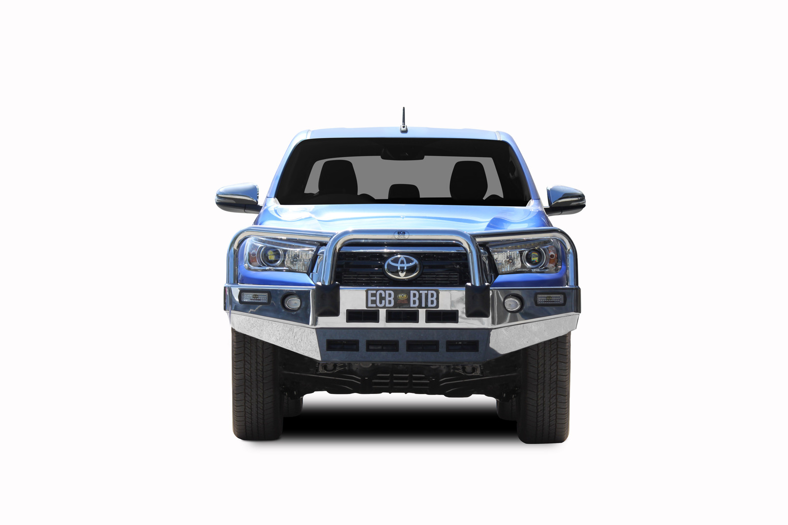 ECB's Bullbar is made from a hi-tensile alloy that weighs half the weight of a steel Bullbar, yet offers the same level of protection. Designed to wrap around the front of the vehicle and mounted to the frame with a specific engineered 8mm thick plate steel mount to form an incredibly secure and strong fit.