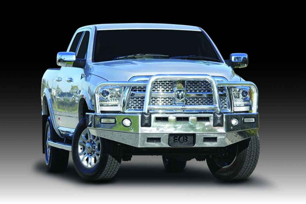 The Bullbar is further reinforced with a full width and braced lower protection skirt. Every Winch Bullbar is secured to the vehicle with a specific engineered 8mm thick plate steel winch mount and will accommodate up to a 11,500lb low mount winch. Everything ECB makes is Airbag Compatible, ADR Compliant and comes with thier lifetime structural warranty. If equipped with spotlight mounting tabs, lights up to 1.75kg can be accommodated.