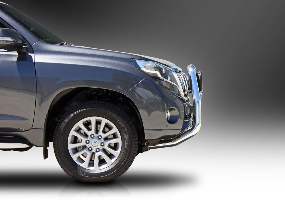 All Nudge Bars - Series 2 are manufactured from hi-tensile mandrel bent alloy tube from an industry leading tube wall thickness that will never rust, nor corrode, and secured to the vehicle with a specific engineered plasma cut steel mount for the best fit possible. All Nudge Bars - Series 2 come with spotlight mounting tabs for lights up to 1.75kg.