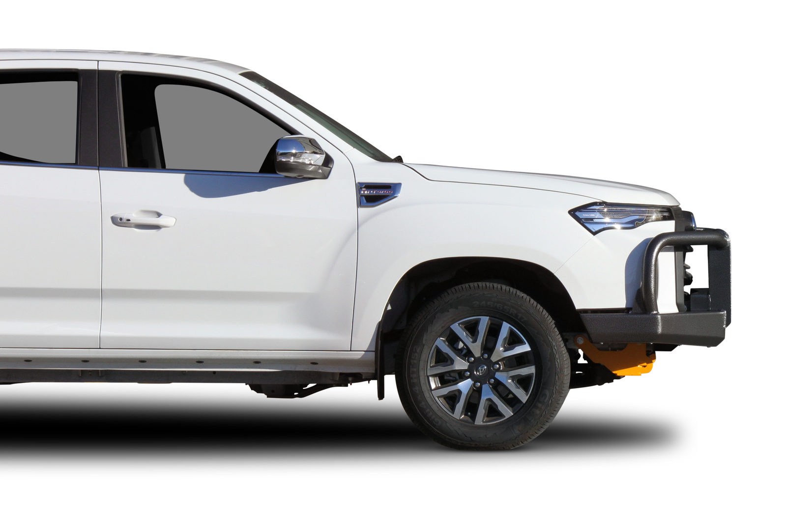 ECB's Bullbar is made from a hi-tensile alloy that weighs half the weight of a steel Bullbar, yet offers the same level of protection. Designed to wrap around the front of the vehicle and mounted to the frame with a specific engineered 8mm thick plate steel mount to form an incredibly secure and strong fit.