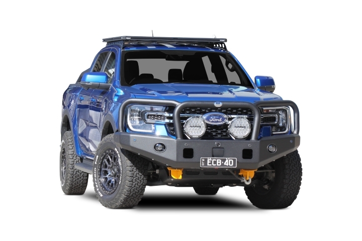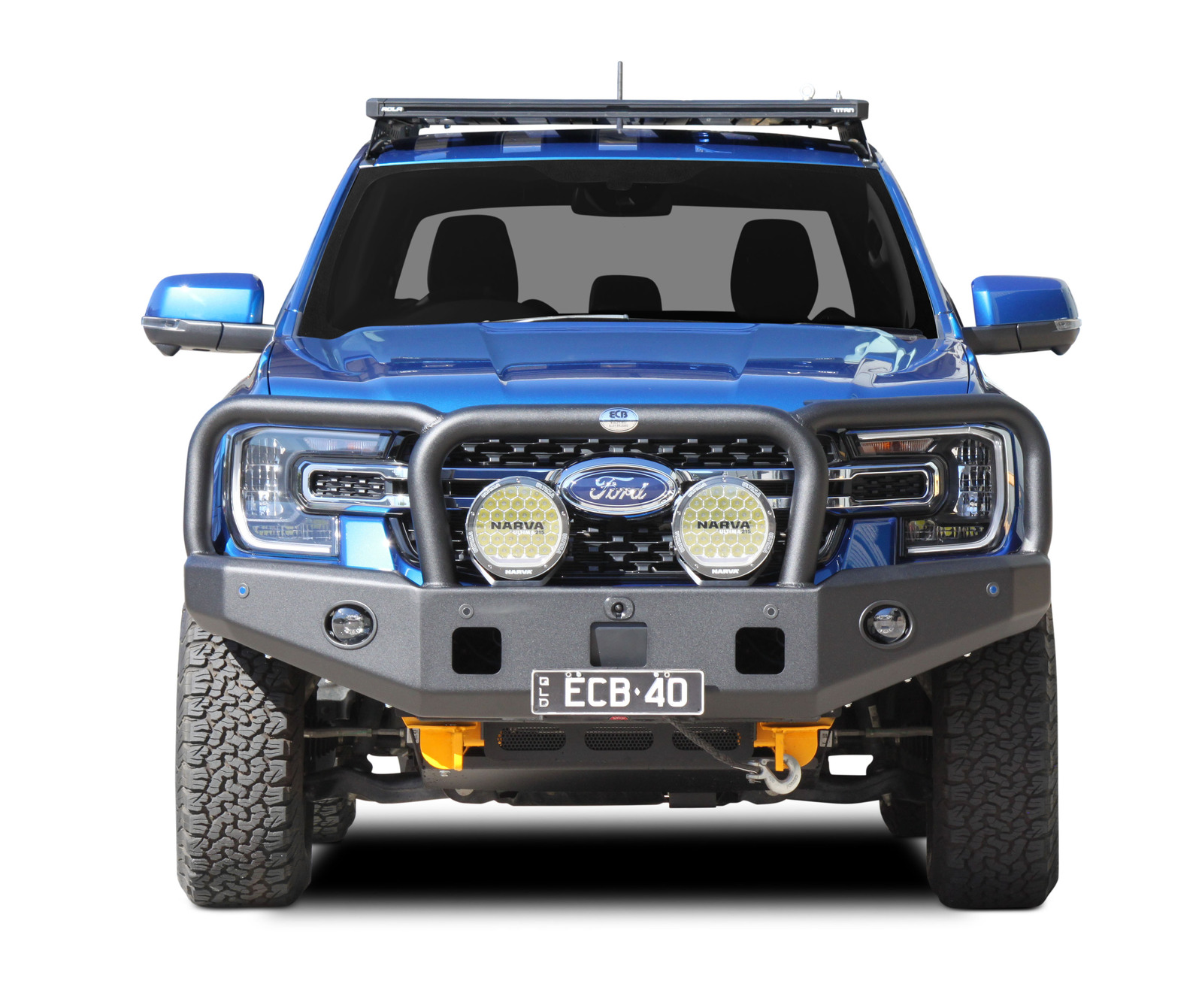 The Bullbar is further reinforced with a full width and braced lower protection skirt. Every Winch Bullbar is secured to the vehicle with a specific engineered 8mm thick plate steel winch mount and will accommodate up to a 11,500lb low mount winch. Everything ECB makes is Airbag Compatible, ADR Compliant and comes with thier lifetime structural warranty. If equipped with spotlight mounting tabs, lights up to 1.75kg can be accommodated.