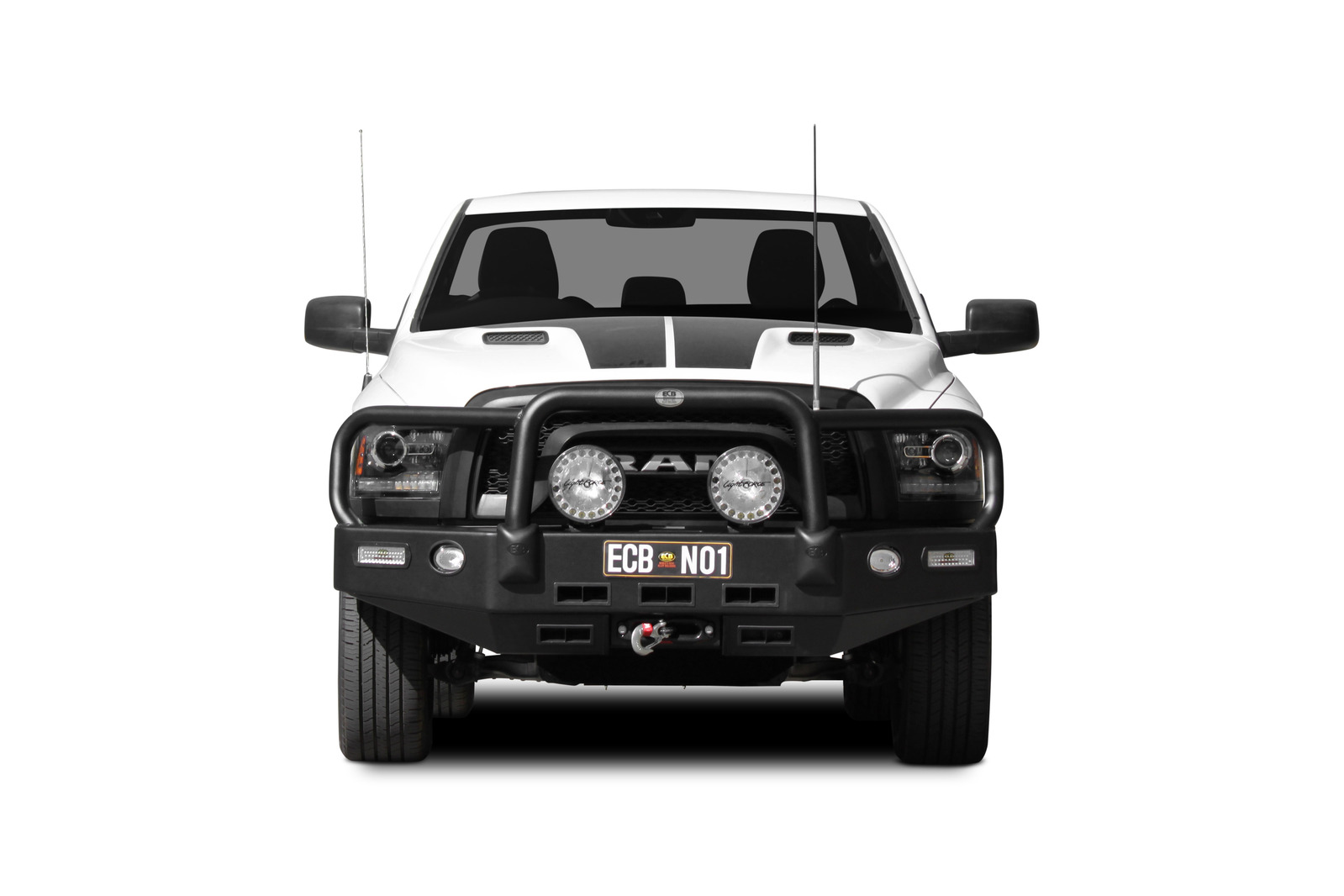 The Bullbar is further reinforced with a full width and braced lower protection skirt. Every Winch Bullbar is secured to the vehicle with a specific engineered 8mm thick plate steel winch mount and will accommodate up to a 11,500lb low mount winch. Everything ECB makes is Airbag Compatible, ADR Compliant and comes with thier lifetime structural warranty. If equipped with spotlight mounting tabs, lights up to 1.75kg can be accommodated.