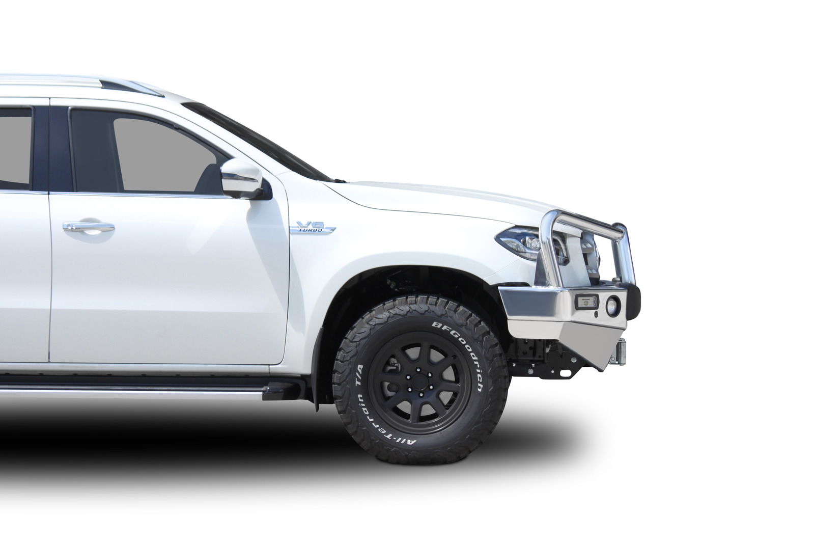 The Bullbar is further reinforced with a full width and braced lower protection skirt. Every Winch Bullbar is secured to the vehicle with a specific engineered 8mm thick plate steel winch mount and will accommodate up to a 11,500lb low mount winch. Everything ECB makes is Airbag Compatible, ADR Compliant and comes with thier lifetime structural warranty. If equipped with spotlight mounting tabs, lights up to 1.75kg can be accommodated.