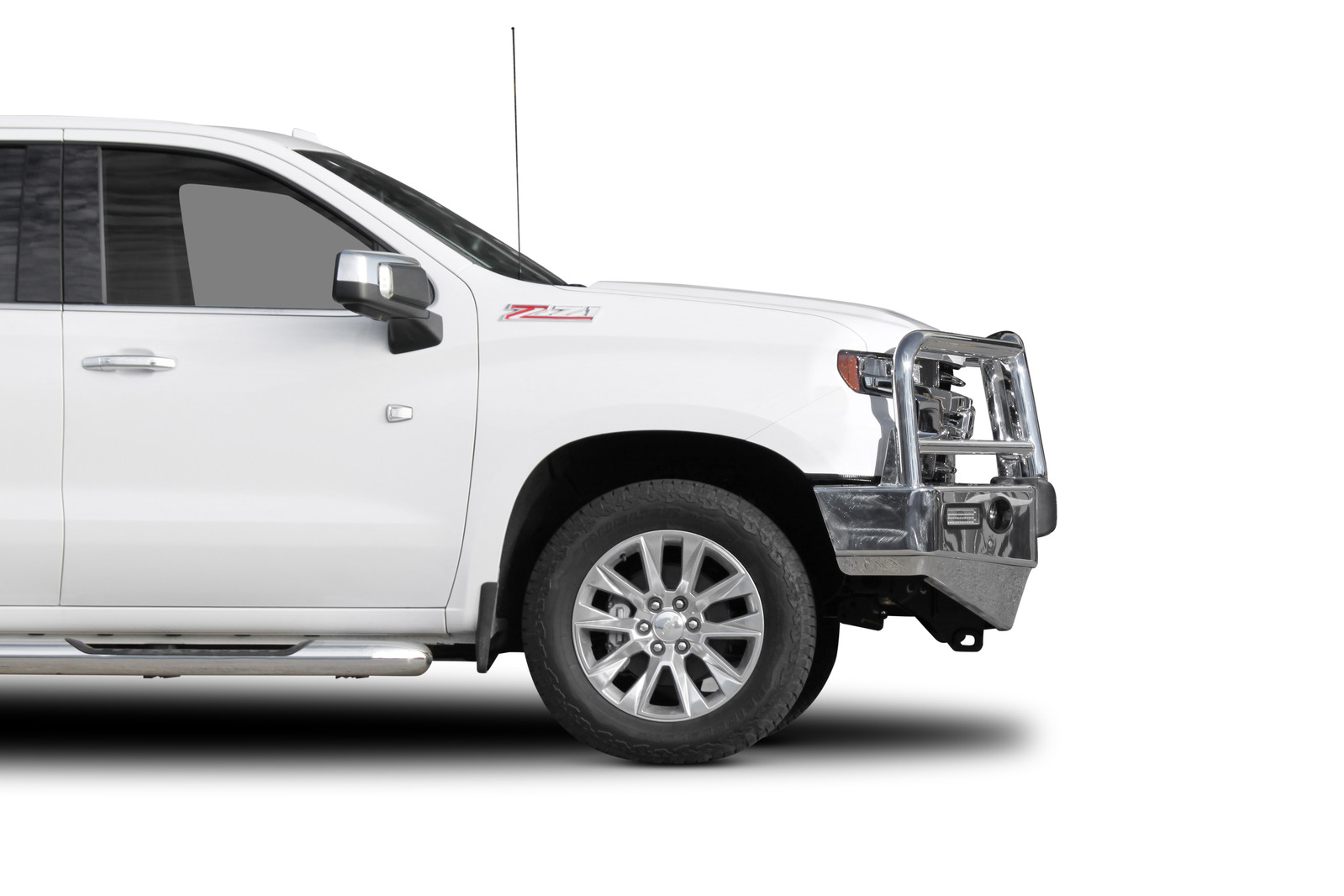 On models with front camera some partial view restriction applies with protection bar installation. Fits Trail Boss Edition.