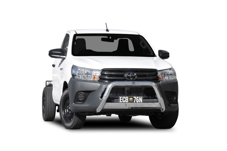 Suits the Toyota HiLux WorkMate/Lo-rider 2WD single cab & dual cab, as well as SR5 wide cab & SR wide cab Incorporates Forward Mitigation Braking System. Fitting lights to the top of the Nudge Bar may impede operation. This Nudge Bar does not include spotlight tabs.