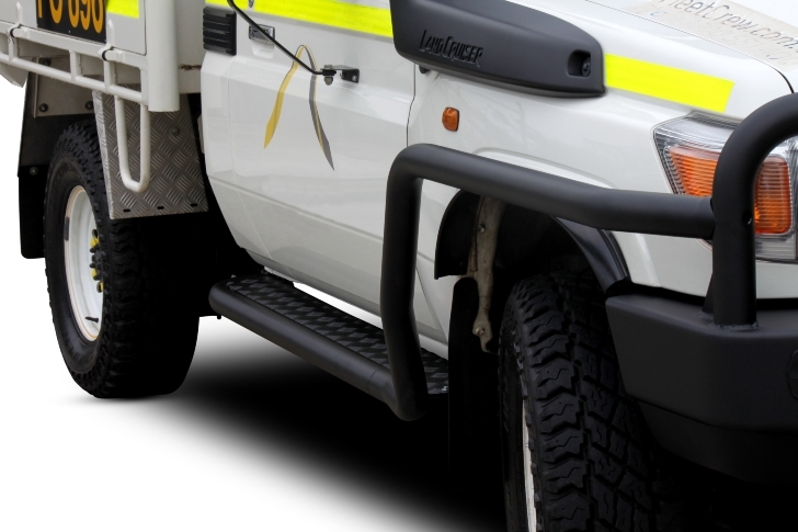 Purchase of this item is for Side Step Rails only. Compatible Bullbar is required to be purchased seperately (BT281SYM or BT281SYB). Only available in Textura Black or Black Ripple Powder Coat Finish only Designed to fit current 79 Series Single Cab (11/2016 - Current)