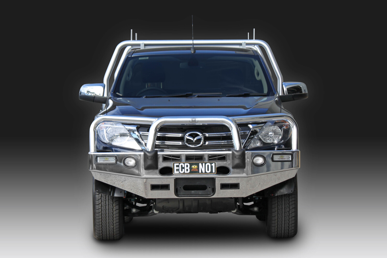 The Bullbar is further reinforced with a full width and braced lower protection skirt. Every Winch Bullbar is secured to the vehicle with a specific engineered 8mm thick plate steel winch mount and will accommodate up to a 11,500lb low mount winch. Everything ECB makes is Airbag Compatible, ADR Compliant and comes with thier lifetime structural warranty. If equipped with spotlight mounting tabs, lights up to 1.75kg can be accommodated.