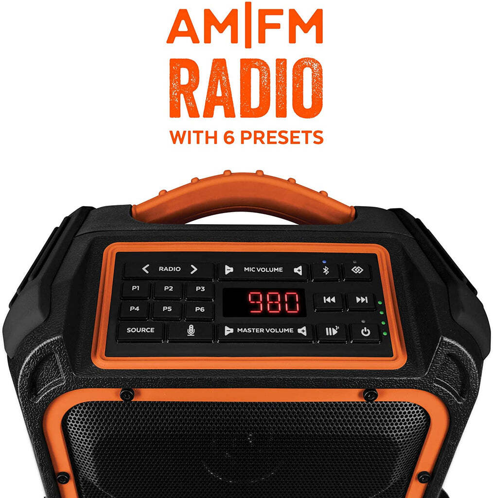 Versatile Inputs and Outputs: The speaker features a 5V USB port for fast device charging, an auxiliary audio input jack for wired connections, and an external microphone jack (1/4") for PA or karaoke use (microphone not included).