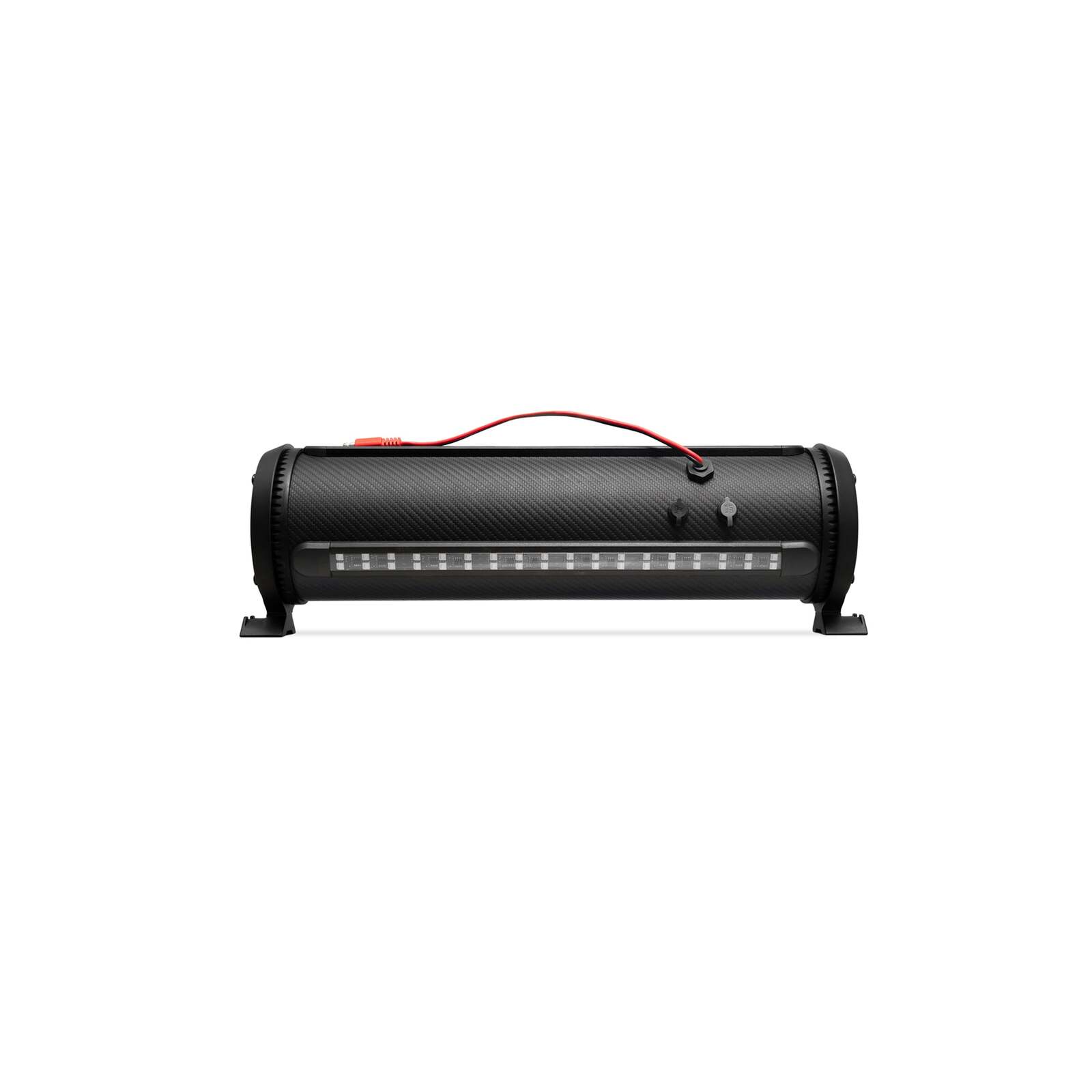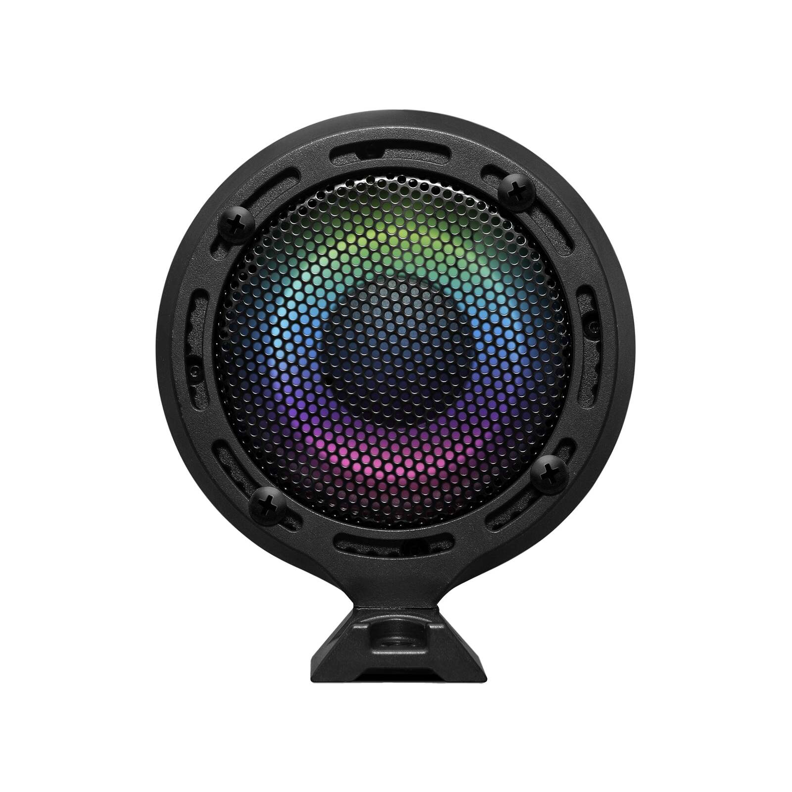 LED Lighting: Enhance your outdoor ambiance with a rear-facing LED light bar featuring two modes: steady light on or off. Addressable RGB LEDs backlight the speakers for added visual appeal.