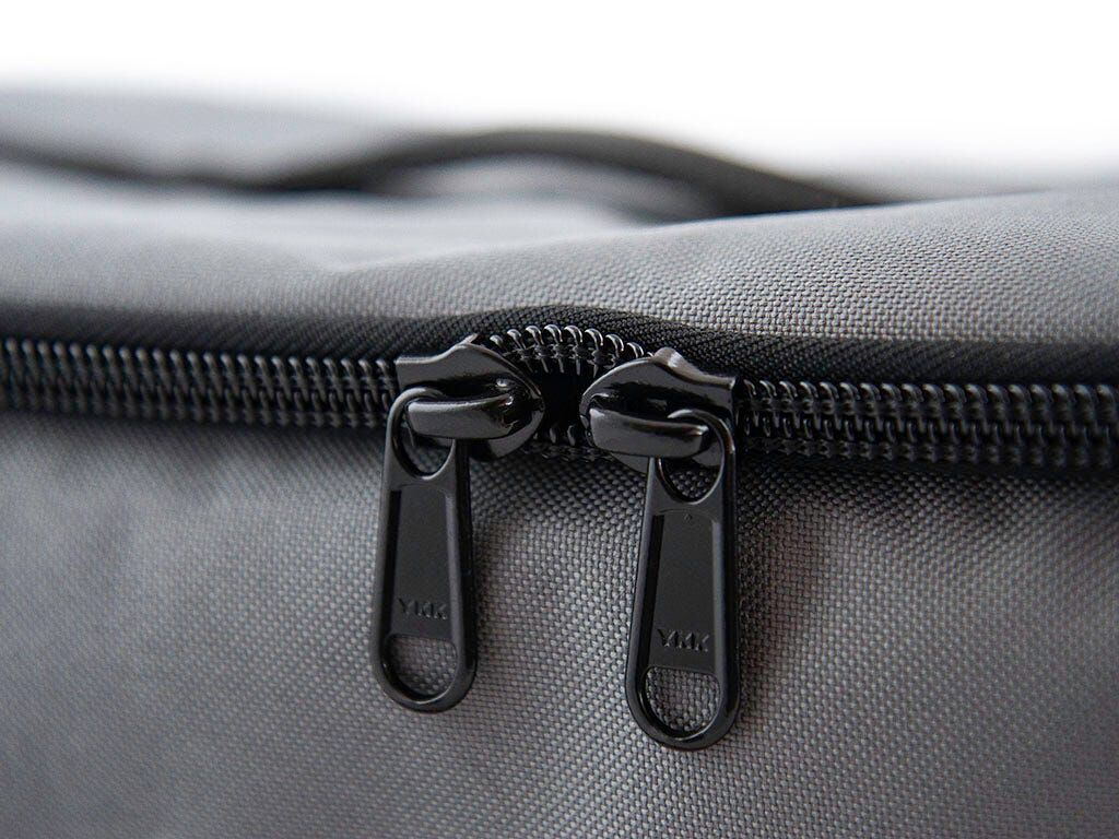 This box is manufactured with rigid plastic walls, a canvas exterior, and vinyl lined interior.